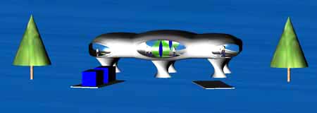 THE DAY AFTER: Your Eye-Land floats and is hold on location by special anchoring devices and tension spools. For safety purposes, all electrical connectors disconnect automatically as soon as it begins to float. All other infrastructure components, such as plumbing, also disconnect to prevent damages. An emergency power generator may supply the basic electricity you need. The driveways provide enough buoyancy to support your cars! 10 DAYS AFTER: Your Eye-Land repositioned itself automatically. All connectors for water, power, communications and any other utilities need to be cleaned, dried and reconnected. Your yard would appreciate some attention.
